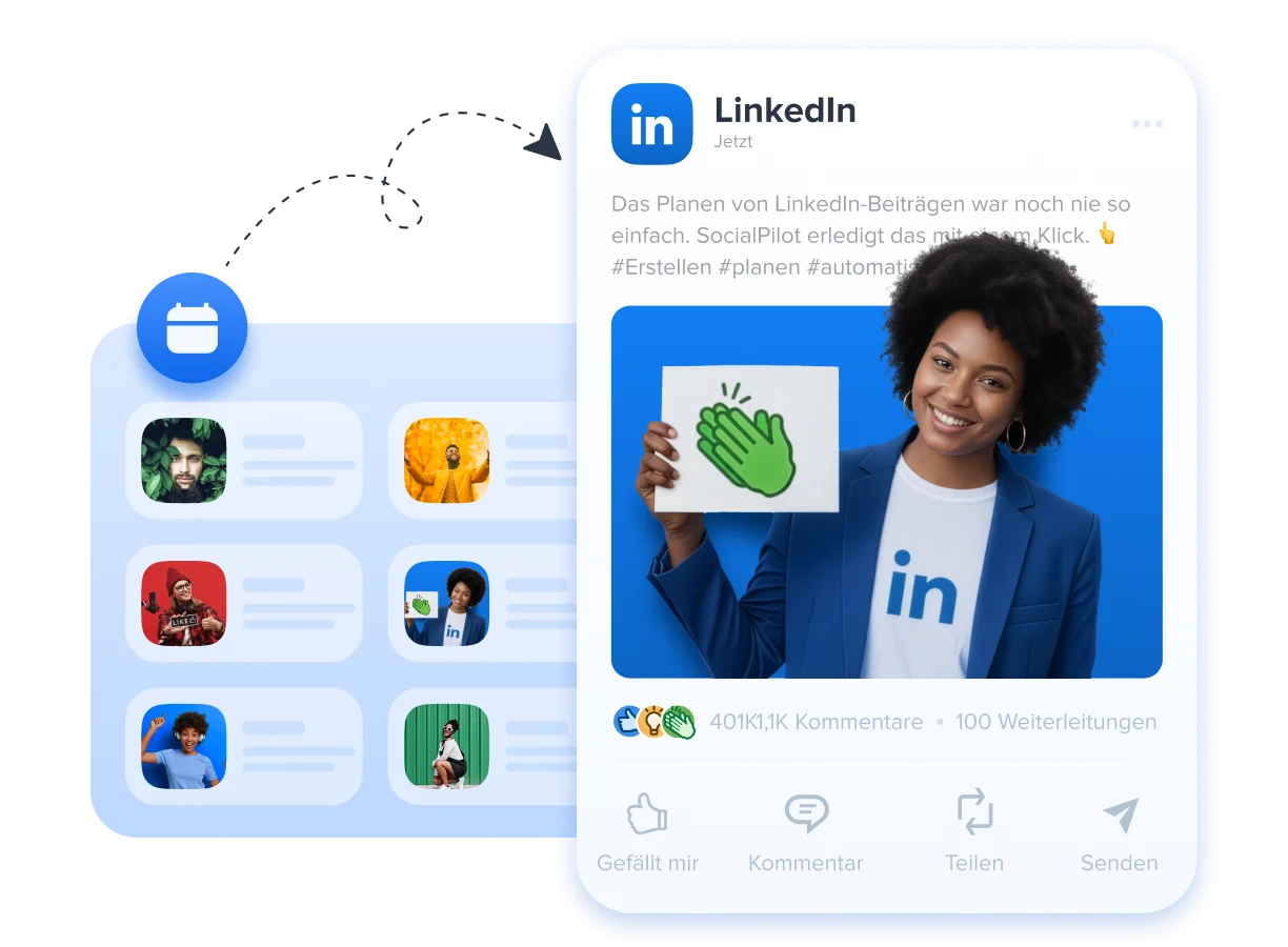 Verbessern Sie Ihre Sichtbarkeit auf LinkedIn, indem Sie Posts, Karussells und Dokumente mit SocialPilot LinkedIn Post Scheduler effizient planen.